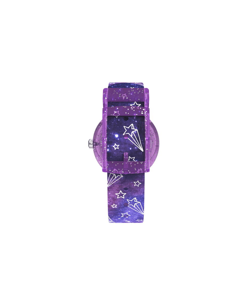 Fuze in Purple FCSP13165,00 €El reloj infantil FUZE IN PURPLE combina los suaves tonos morados con detalles de corazones y un bisel giratorio, un regalo educativo que ayuda a aprender a decir la hora con aire dulce y relajado. -